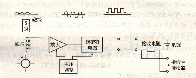 前置放大器由磁電感應(yīng)轉(zhuǎn)換器與放大整形電路兩部分組成,如下圖所示。